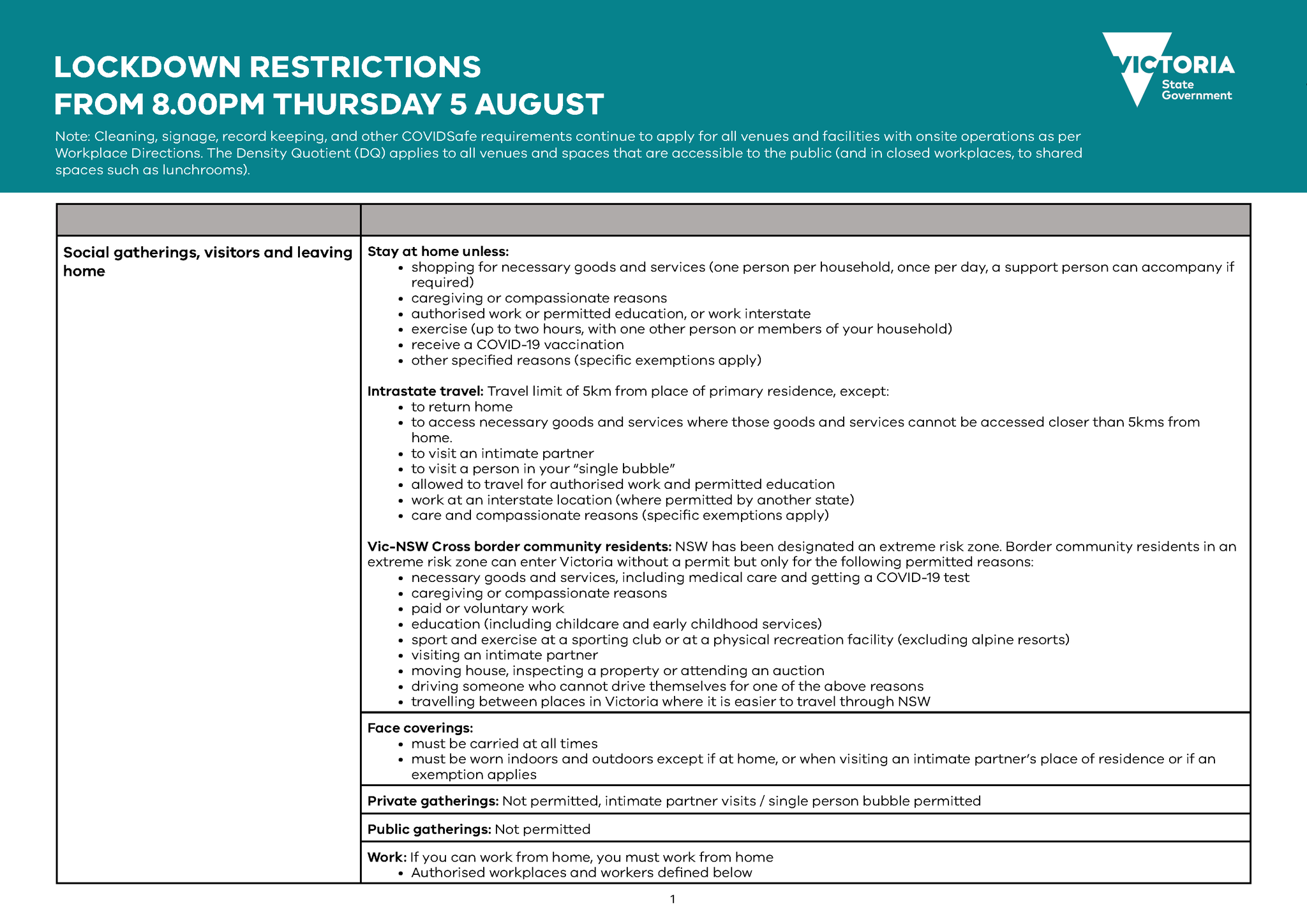 Bridget Rollason On Twitter Two Week Extension Melbourne To Hopefully Come Out Of Lockdown At Midnight On Thursday Sep 2 Curfew 9pm 5am Permits Required For Authorised Work Large Scale Construction Reduced To